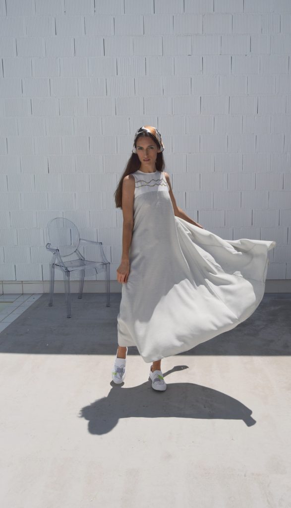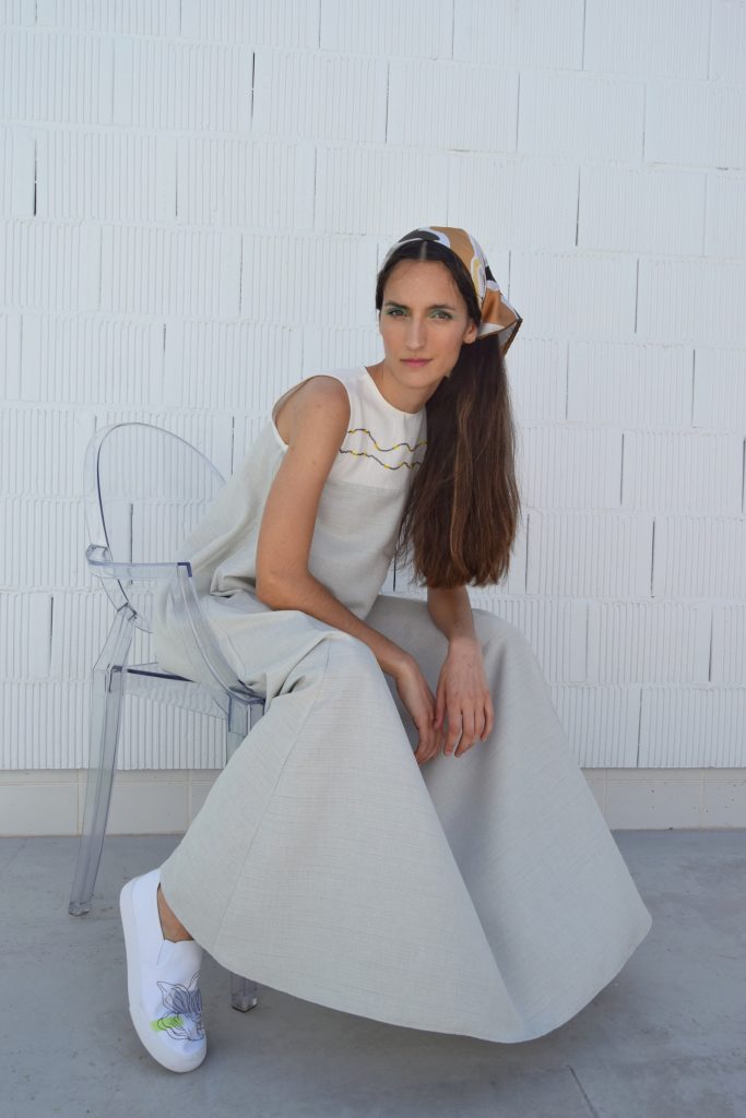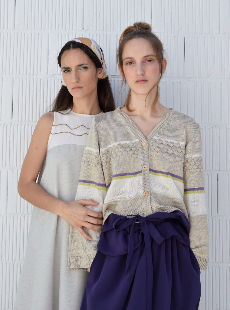 All garments including knitwear have been designed and sewn by Natalia Bruguera using deadstock fabrics and a vintage knitting machine that was inherited from her grandfather.